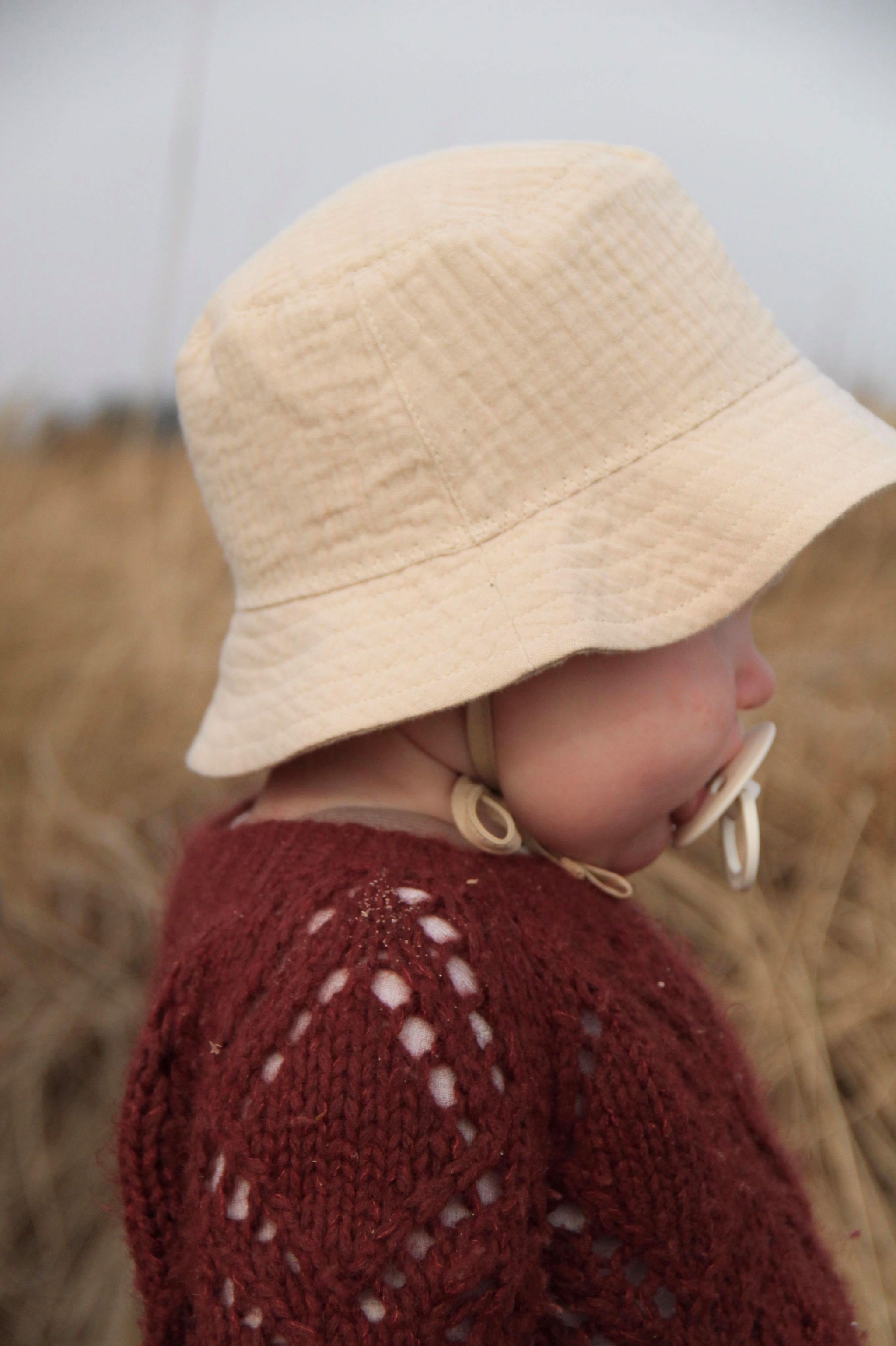 Den smukke Huttelihut hat er perfekt til beskyttelse af barnets ansigt og hoved for solens stråler.