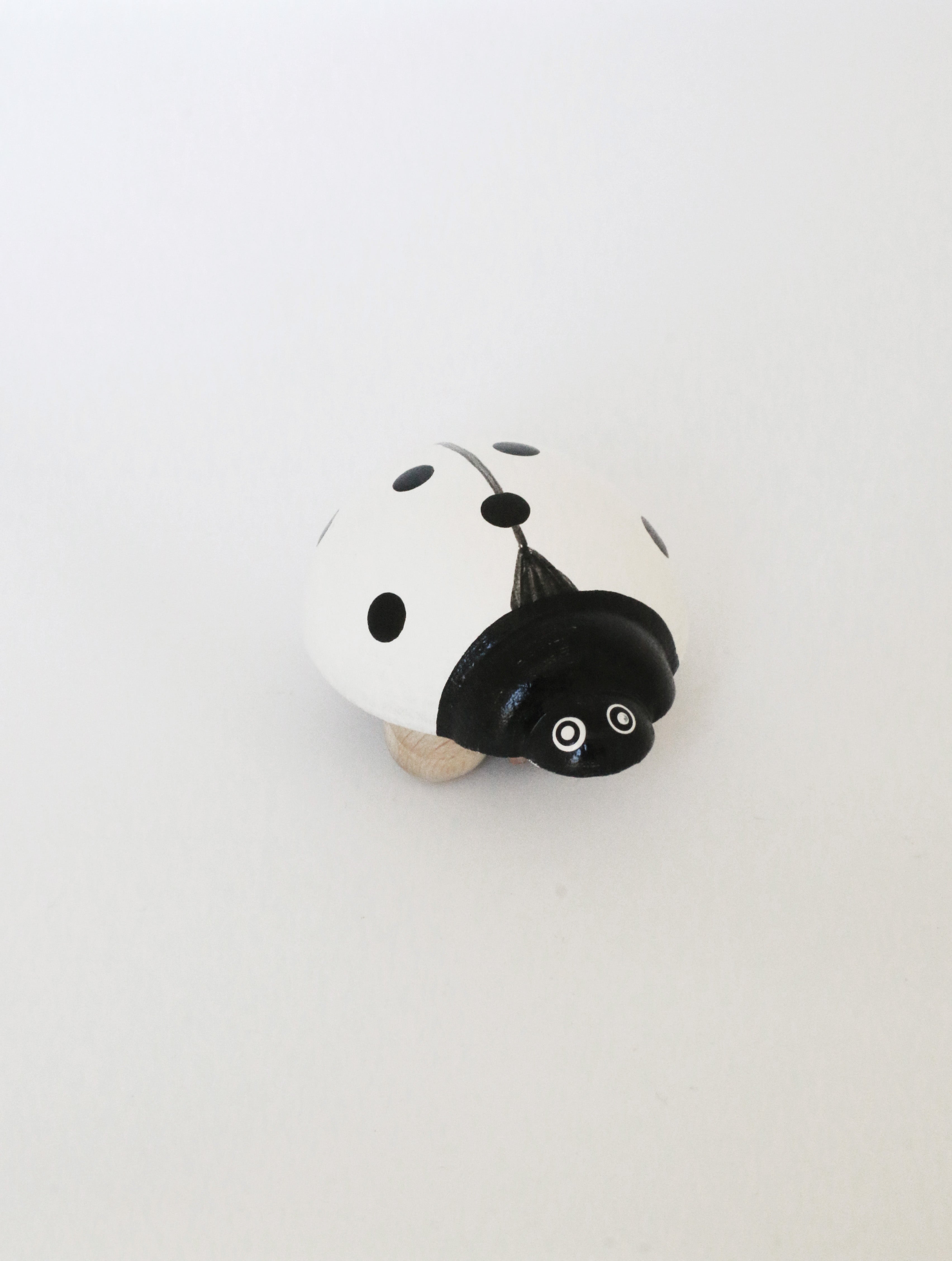 LuxBaby.dk har mariehønen i både hvid og lyserød. Mariehønen er håndskåret i træ af bedste kvalitet og har små hjul nedenunder, så mariehønen kan pile afsted hen over gulvet.